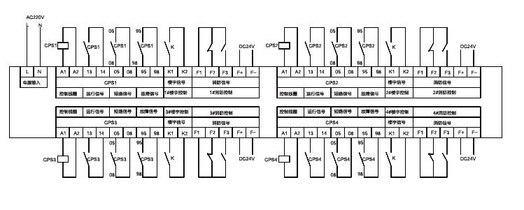 控制模塊:分為主模塊與輔助模塊,它的作用是實現(xiàn)CPS(KB0)的各種工作狀態(tài)和其它控制輸入信號的巡回檢測,保證其安全可靠的運行??刹樵僀PS(KB0)運行狀態(tài)觸點、控制線圈、消防信號、應急信號、自動信號、樓宇信號、消防栓等狀態(tài),并根據(jù)預先設(shè)定的程序進行工作。