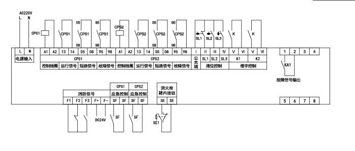 (2) 自帶自動信號輸入端口,例如液位信號SL1,SL2,SL3;樓宇信號K1,K2;消防信號F1,F(xiàn)2,F(xiàn)3等。